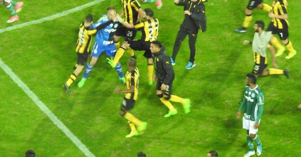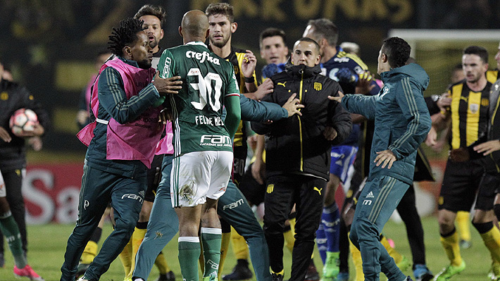 El duelo entre Peñarol y Palmeiras terminó con escándalo luego que los futbolistas protagonizaran una descomunal pelea en Montevideo.