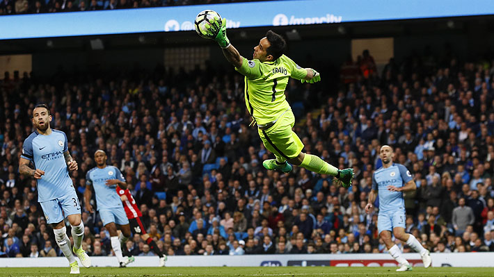El meta chileno del Manchester City Claudio Bravo tuvo una buena actuación antes de la lesión.