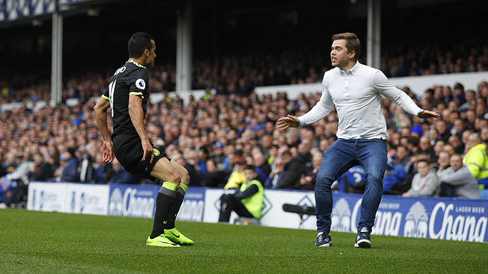 El seguidor del Chelsea posteriormente fue detenido por los guardias y sacado del terreno de juego.