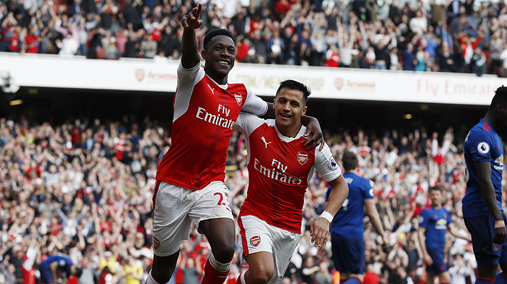 Sánchez celebrando junto a Welbeck la segunda conquista sobre el United.