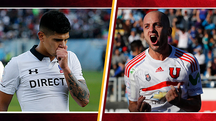 | Colo Colo Minuto 87 Debacle total. Se juntó todo el peor escenario para Colo Colo. Lo más grave fue que a 180 segundos del final Gonzalo Villagra puso el empate para Deportes Antofagasta. Mientras los azules festejaban en ese mismo minuto el 3-0 sobre los celestes. Nadie lo podía creer en el Monumental. Todos los reproches fueron contra Guede. | U. de Chile Minuto 87 Doble celebración en la Sexta Región. Felipe Mora convertía el tercer tanto para la U, tras un fuerte carrerón por centro de la cancha para luego sacarse al golero Miguel Pinto y provocar la alegría total de los forofos universitarios. |