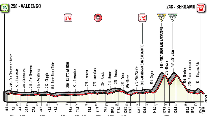 La decimoquinta etapa se disputa este domingo entre Valdengo y Bérgamo, de 199 kilómetros, con un interesante final que incluye dos puertos habituales en el Giro de Lombardía que pueden albergar alguna sorpresa.