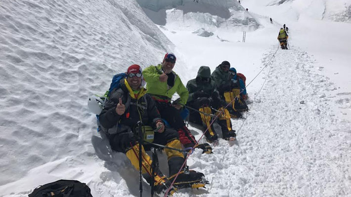 El empresario y deportista Hernán Leal, acompañado del sherpa Lakpa Chhiri, coronó la cumbre del techo del mundo, luego de un trayecto final de 9 horas desde el Campo 3 a 8.300 msnm.