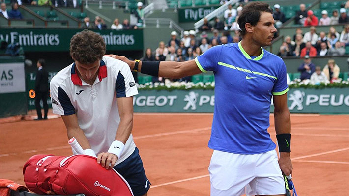 PARÍS.- El español Rafael Nadal se acercó a dos victorias de su ansiado décimo título en Roland Garros tras ganar este miércoles en apenas 51 minutos, esta vez en cuartos de final contra su compatriota Pablo Carreño, que abandonó por lesión cuando iba ya perdiendo 6-2 y 2-0.