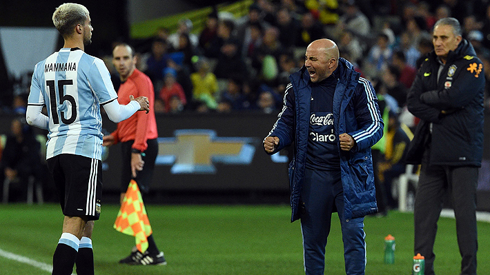 AFPGol de Argentina (Gabriel Mercado), el primero de la Era Sampaoli. Celebración eufórica del DT Argentino. Argentina 1 - 0 Brasil pic.twitter.com/orkfzGWxjX
