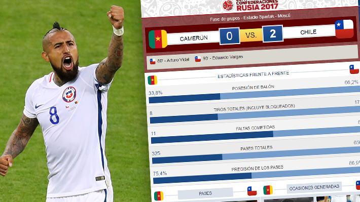 Notable posesión de Chile, Vargas el que más remató: Las estadísticas del Chile-Camerún por Copa Confederaciones