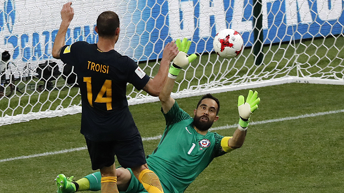Poco pudo hacer el meta Claudio Bravo en el gol de Australia.