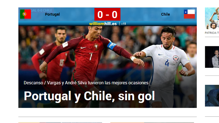 "Portugal y Chile están haciendo un enorme derroche físico. Comienzan a tener imprecisiones. Chile tiene más balón que Portugal pero el combinado luso genera peligro a la contra. Portugal domina y Cristiano, escorado a la izquierda, está generando mucho peligro con sus centros", afirma el citado portal.