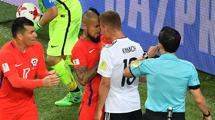 Vidal tuvo un duro encontrón con Joshua Kimmich en la final de la Copa Confederaciones.