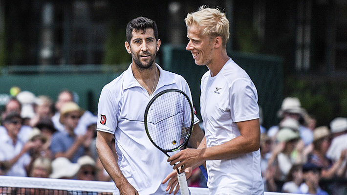 El tenista chileno Hans Podlipnik junto al bielorruso Andrei Vasilevski en Wimbledon.