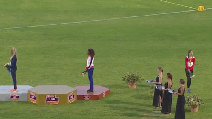 Violetta Skvortsova demostró toda su rabia luego de ganar la medalla de oro en el salto triple en el Campeonato Europeo Sub 20. Arriesga sanciones.