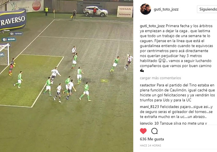 A través de su cuenta de Instagram, el "Pájaro" escribió un mensaje acompañado de la imagen que muestra que estaba habilitado al momento de impactar el balón y anotar lo que era el 2-1 en favor de su equipo (el partido terminó 2-1 en contra de Palestino).