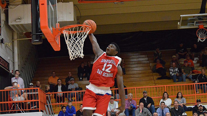 Zion Williamson está siendo tentado por varias universidades debido a su gran talento y a las espectaculares volcadas que realiza en cada partido.
