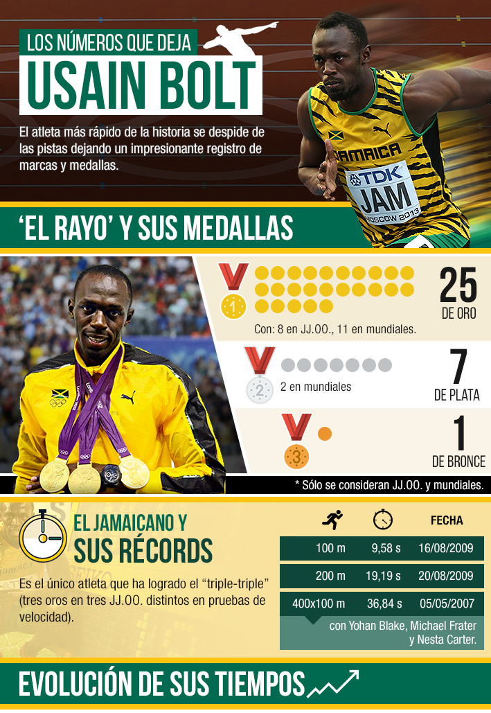 Sus medallas, récords y millones: Mira los extraordinarios números que deja Usain Bolt