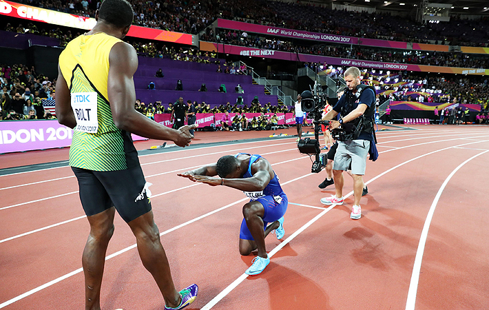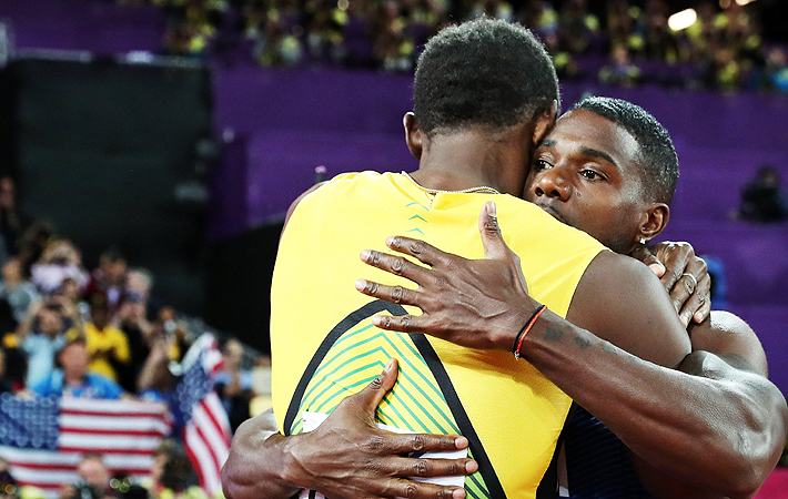 El jamaiquino, en tanto, se asombró con la acción del estadounidense e incluso quedó con la mano estirada, ya que no esperaba que Gatlin se inclinara. Posteriormente lo abrazó y felicitó.