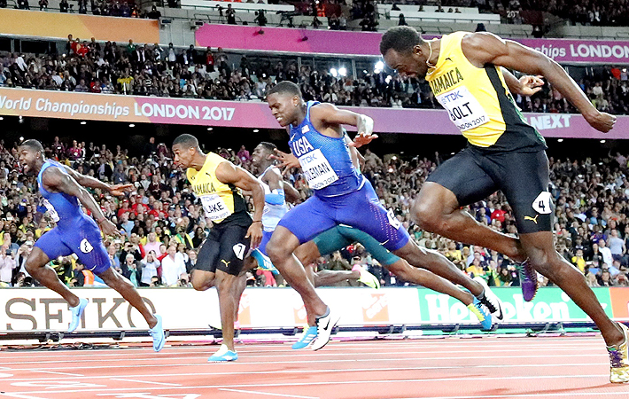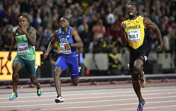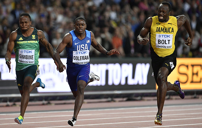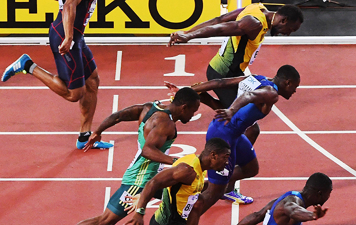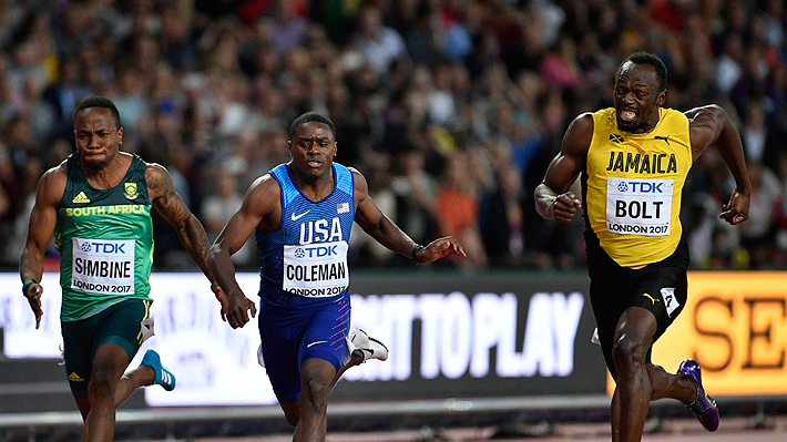 Su rostro lo decía todo. Al percatarse de que no iba a ganar la carrera, Usain Bolt se desesperó y arremetió con todo hasta la meta. Sin embargo, nada pudo hacer para quedarse con el primer lugar. Su angustia quedó inmortalizada en varias imágenes.