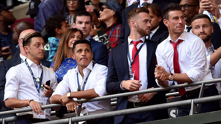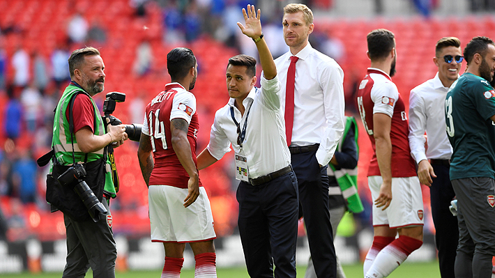 El delantero chileno vio desde las tribunas como su equipo se quedó con la "supercopa" de Inglaterra, tras imponerse desde los lanzamientos penales, y vivió como un hincha más la victoria de los "Gunners".
