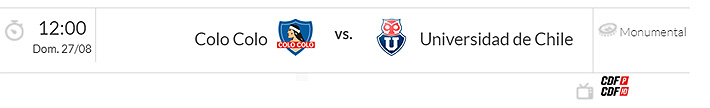 12:00 horas, Colo Colo vs. Universidad de Chile, estadio Monumental.