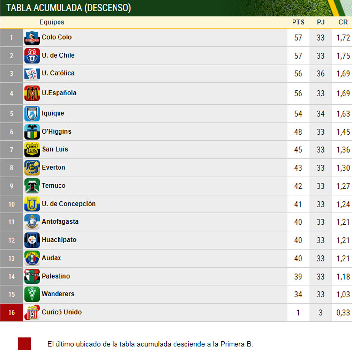 Y también la tabla del coeficiente, que determinará qué club descenderá a la Primera B.