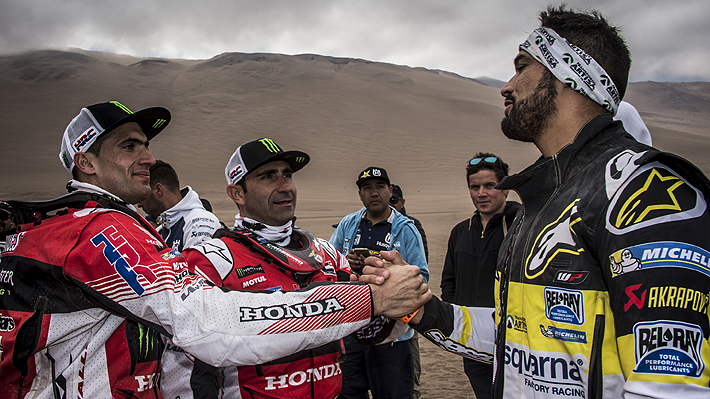 El deportista nacido en San Antonio y radicado en Viña del Mar, obtuvo el triunfo al vencer en la quinta etapa por las dunas de Iquique (158 kms) a los pilotos de Honda Kevin Benavides (argentino) y Paulo Goncalves (portugués), quienes lo escoltaron en el podio final.
