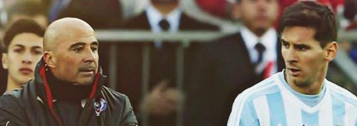 Inostroza atrás de Sampaoli en la final de la Copa América contra la Argentina de Messi).