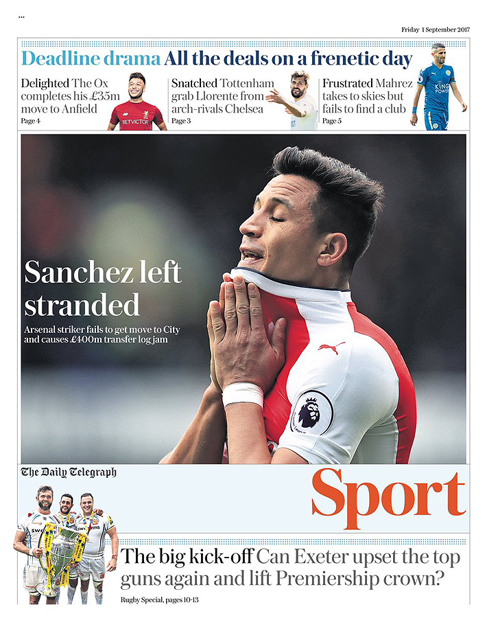 Revisa las portadas de Inglaterra sobre la frustrada venta de Sánchez: