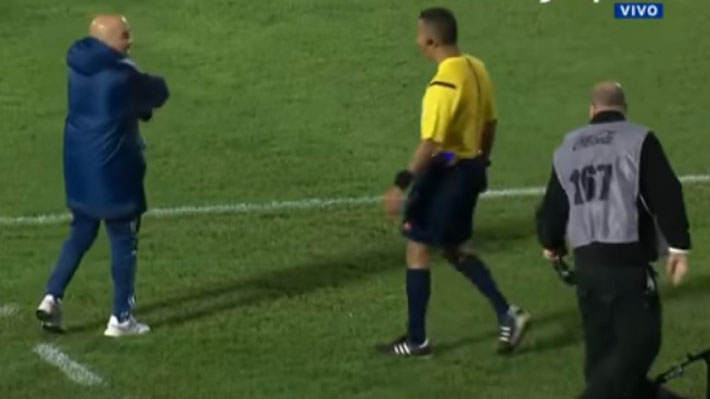 Mientras se desarrollaba el encuentro, el ex DT de la "Roja" fue a reclamar una jugada al cuarto árbitro, quien lo invitó a volver al área técnica.