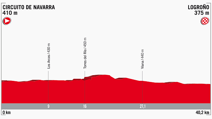 El portador de la roja se frota las manos. Tiene ante sí un bombón que difícilmente dejara escapar, una crono de 40 kilómetros en el Circuito de Navarra y Logroño, donde deberá mostrar su superioridad ante todos sus rivales, empequeñecidos por un líder que sin aplastar ha sido capaz de dominar la carrera conforme a sus intereses.
