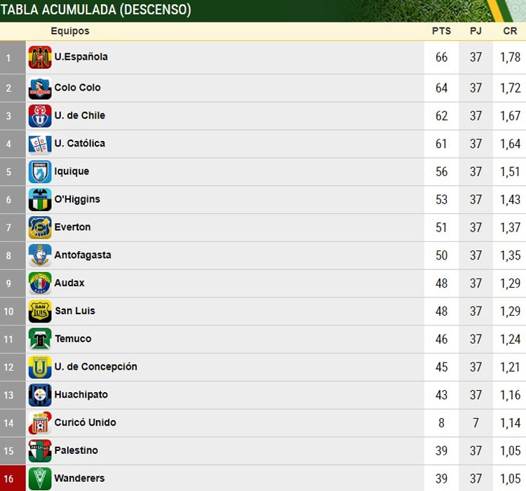 Estos son Wanderers y Palestino, quienes con sus derrotas ante Audax y O'Higgins, quedaron muy complicados a falta de ocho jornadas para el final del certamen.