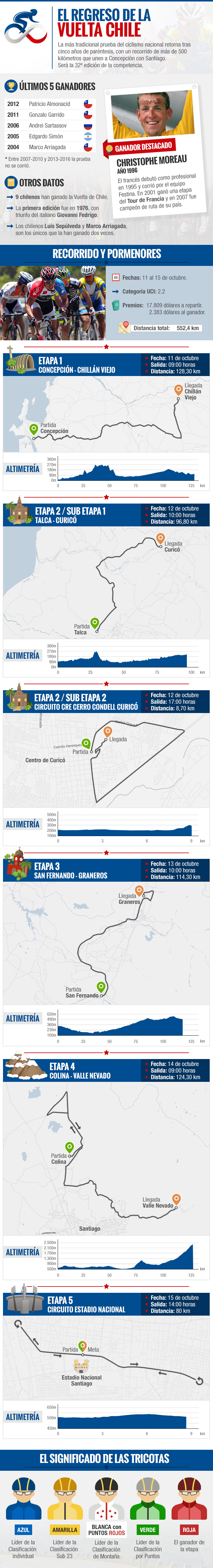 La máxima prueba del ciclismo de ruta nacional retorna luego de cinco años, con un recorrido de 552 km que unirán Concepción y Santiago a partir del 11 de octubre.
