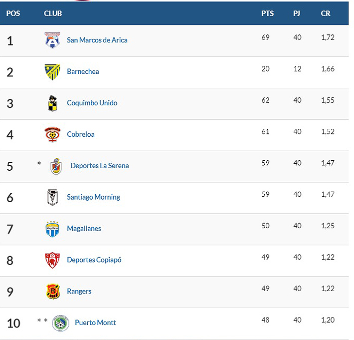 Si los de la Quinta Región finalizan primeros, deberán medirse ante San Marcos (segundo del torneo anterior), y quien triunfe en dicho lance, chocará con el último de la tabla Acumulada de Primera División (actualmente Curicó Unido).