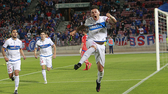Nicolás Castillo celebrando uno de los goles en el empate 3-3 por Copa Chile 2016.