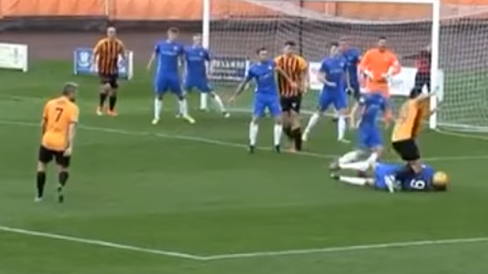 La acción se dio en la segunda división de Escocia y ha dado la vuelta al mundo por lo curioso del cobro y de la forma de defender del jugador.