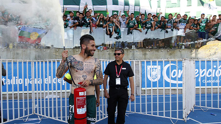 Marco Medel animó la fiesta con un extintor en el sector cercano a la barra de Wanderers (crédito: Aton).