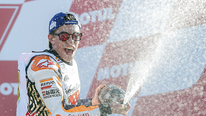 SANTIAGO.- El piloto español Marc Márquez (Honda) amplió este domingo su reinado en MotoGP al proclamarse por cuarta vez campeón del mundo de la categoría reina del motociclismo en el Gran Premio de Valencia, que ganó su compañero de equipo, Dani Pedrosa.