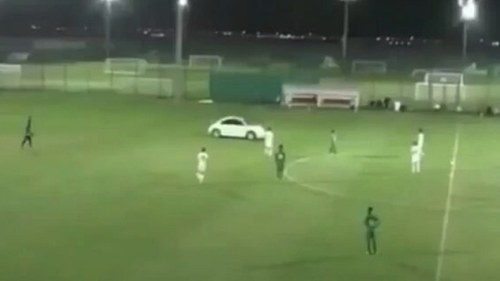Pudo terminar en tragedia: Auto ingresa a la cancha a toda velocidad en pleno partido
