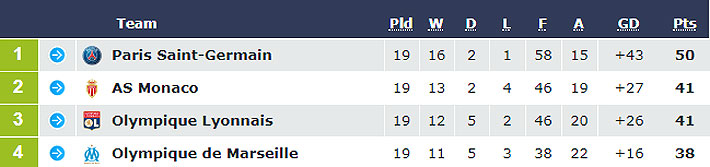 Por último, en Francia el PSG es el elenco que domina. El equipo donde brilla Neymar, Edinson Cavani y Kylian Mbappé es puntero con 50 puntos, 9 más que el Mónaco, segundo en la clasificación.