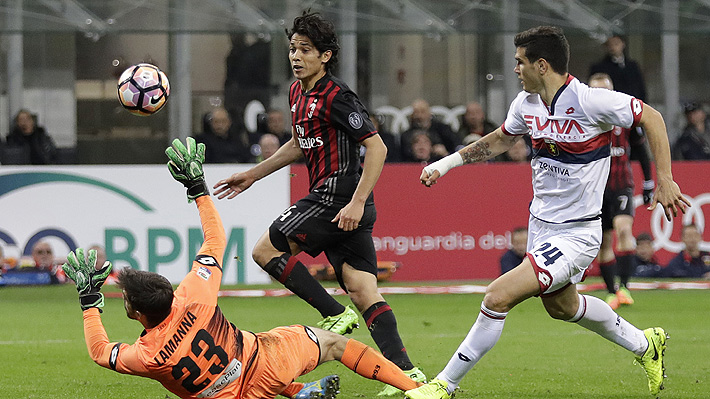 La anotación del ex Colo Colo fue contra el Genoa, en la jornada 29 de la Serie A, en la que elevó el balón por sobre el portero Eugenio Lamanna, lo que marcó su único festejo con el cuadro Rossonero.