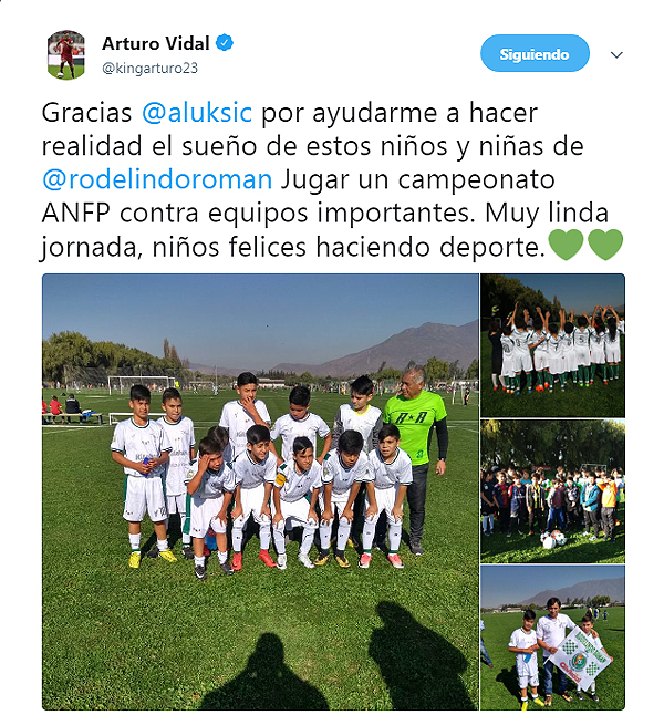 Gracias @aluksic por ayudarme a hacer realidad el sueño de estos niños y niñas de @rodelindoroman Jugar un campeonato ANFP contra equipos importantes. Muy linda jornada, niños felices haciendo deporte".
