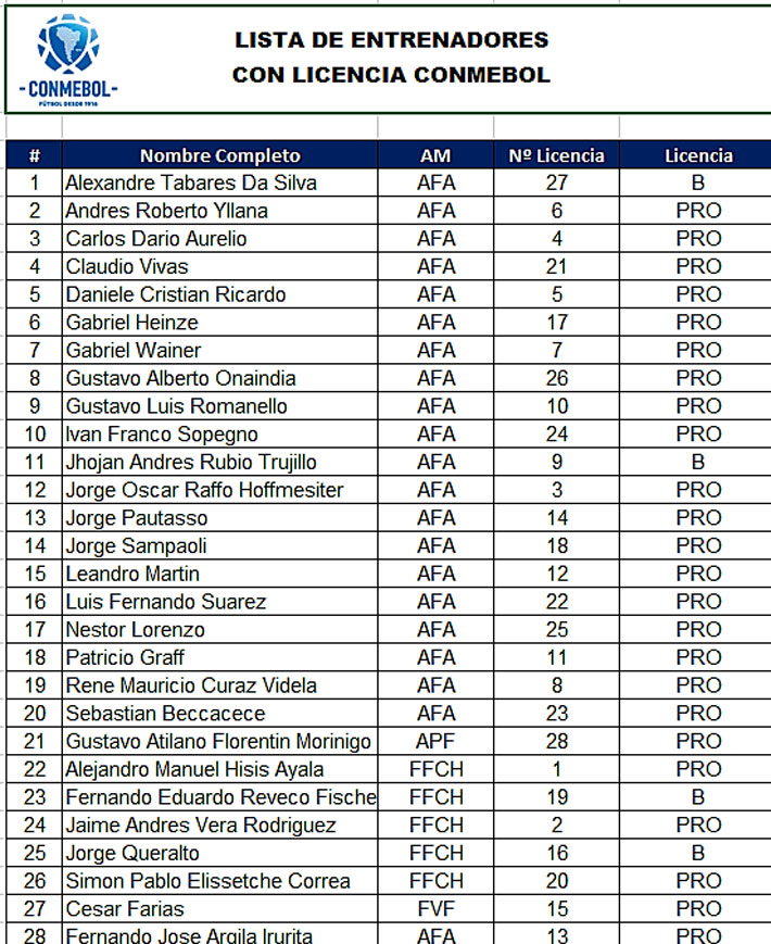 El ente rector exigirá que cualquier técnico que sea parte de algunos de los torneos (Sudamericana, Libertadores, Recopa) acredite la licencia PRO o algún título equivalente en el extranjero. Apenas 24 estrategas en todo el continente la poseen.