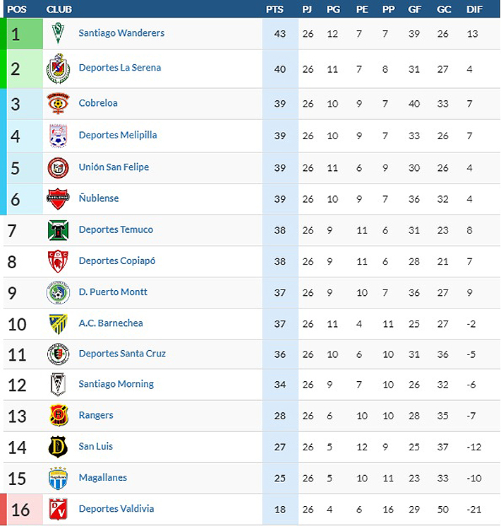 Si los sureños pierden en su visita a Santa Cruz y si Magallanes le gana a Cobreloa, la diferencia entre ambos sería de diez unidades, con solo nueve por disputar. Sin embargo, para que Valdivia perdiera la categoría, también se tendría que dar que San Luis al menos empate con Santiago Morning.