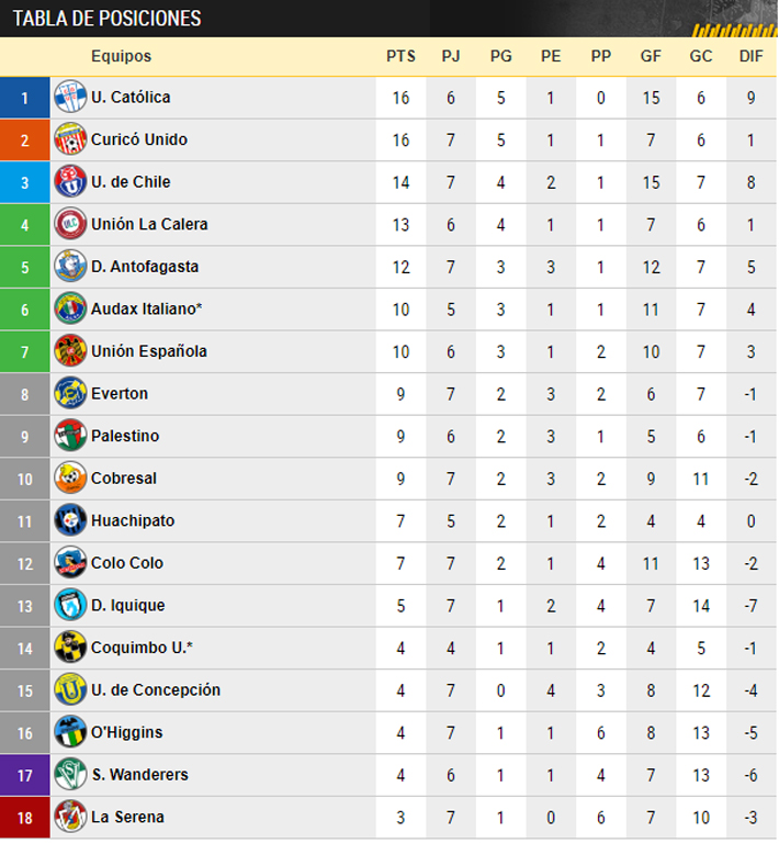 Se está jugando la fecha 7 del Campeonato Nacional y en esta jornada hubo tres partidos. Recordemos que este domingo no se jugará ningún duelo.