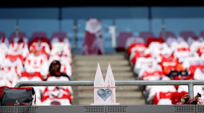 Enviaron sus camisetas y bufandas para adornar las butacas del estadio, simulando "hinchas".
