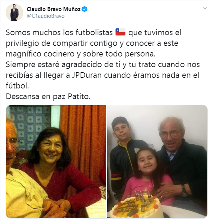 Mediante sus redes sociales, el guardameta chileno escribió que "somos muchos los futbolistas que tuvimos el privilegio de compartir contigo y conocer a este magnífico cocinero y sobre todo persona".