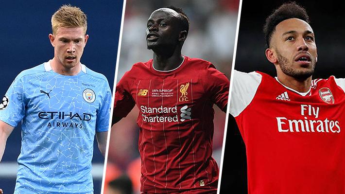 Kevin De Bruyne, Sadio Mané y Pierre-Emerick Aubameyang.