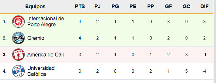Los cruzados han perdido los dos compromisos que llevan en el torneo continental. Cayeron ante Inter de Porto Alegre en Brasil (3-0) y América de Cali (2-1) en Santiago.