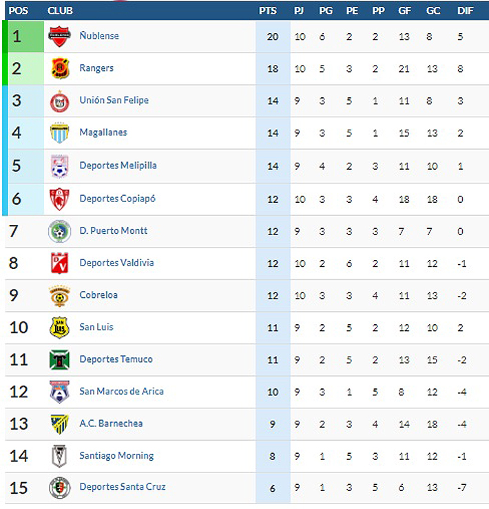 Al fondo de la tabla está Santa Cruz. La escuadra unionista empató en esta jornada con San Luis y llegó a seis puntos. Solo dos unidades más tiene Santiago Morning, que no pudo derrotar a Valdivia.