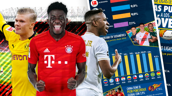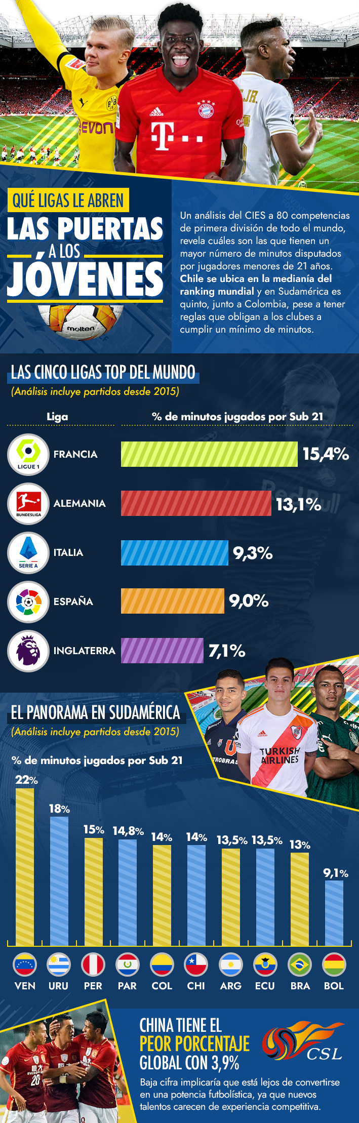 | Liga | Partidos analizados | % minutos Sub 21 | |