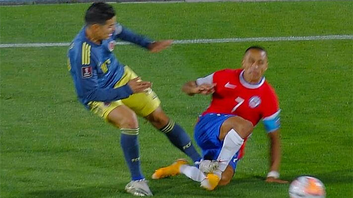 Sobre el final del primer tiempo en el partido entre Chile y Colombia y cuando el marcador estaba 2-1 a favor de la "Roja", Alexis Sánchez recibió una fuerte infracción.