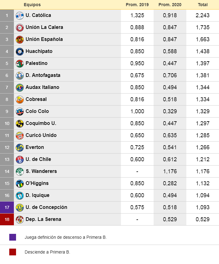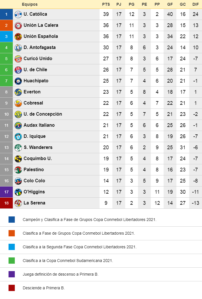 En cuanto al descenso, estarían bajando directamente La Serena y U.de Concepción, mientras que O'Higgins e Iquique jugarían el partido definitorio por el tercer descenso.